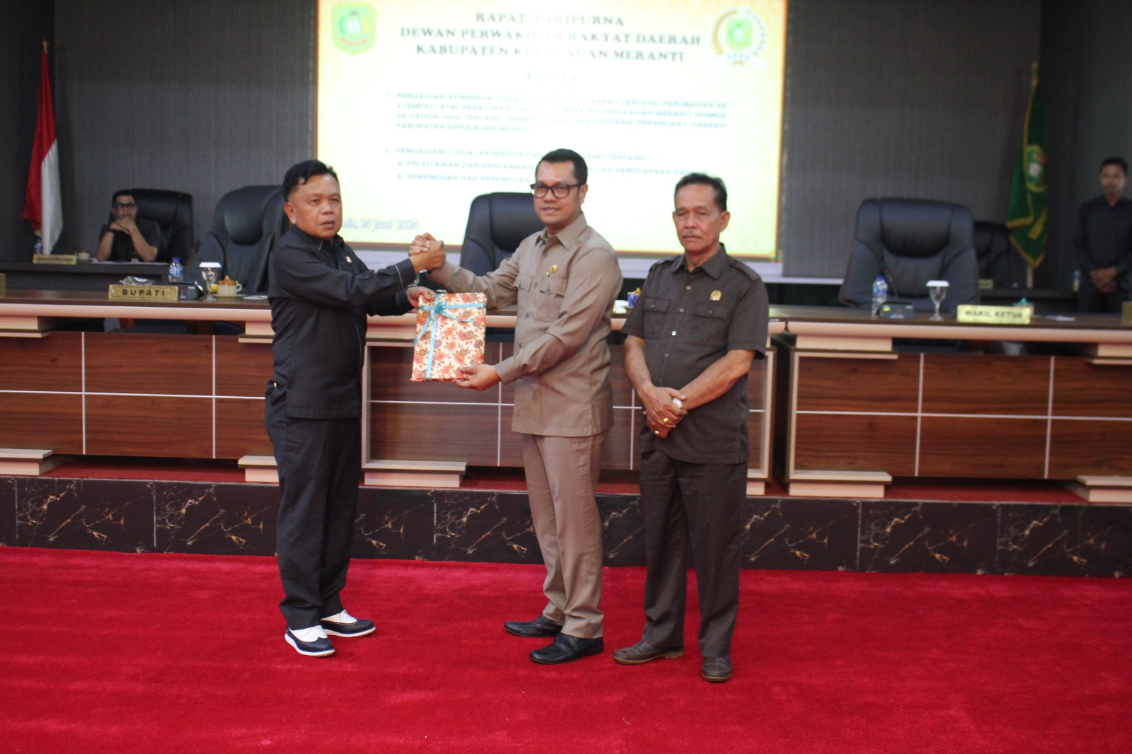 Adapun Ranperda inisiatif DPRD yakni Ranperda tentang Usulan Pemerintah Daerah Tentang Perubahan Keempat Atas Peraturan Daerah Kabupaten Kepulauan Meranti Nomor 9 Tahun 2016 Tentang Pembentukan Dan Susunan Perangkat Daerah Kabupaten Kepulauan Meranti.